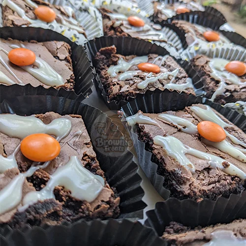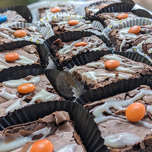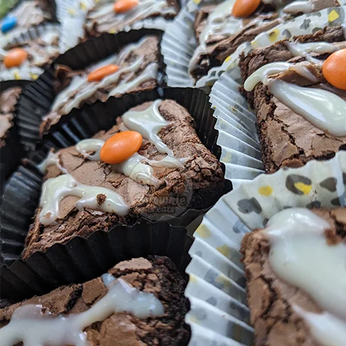 Soft and fudgy brownie pieces topped with smooth melted white chocolate. A rich, sweet treat perfect for snacks, gifting, or celebrations.